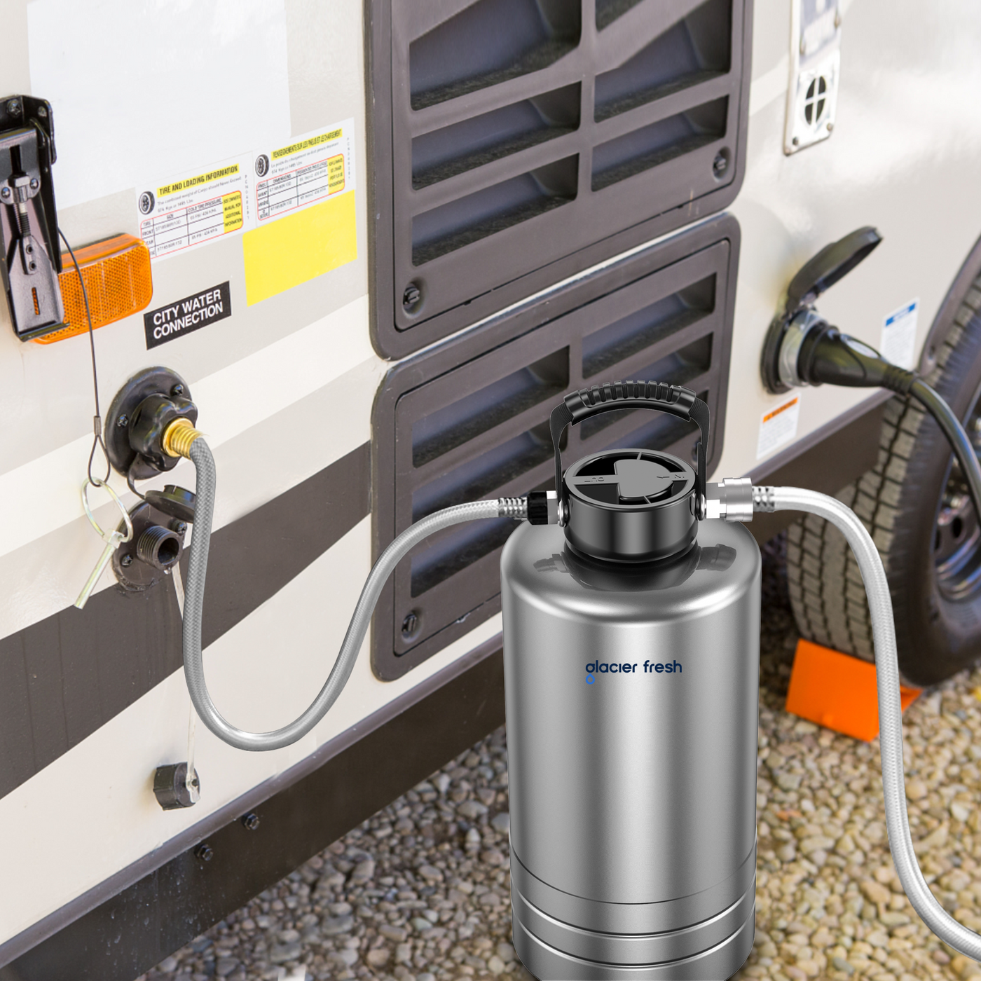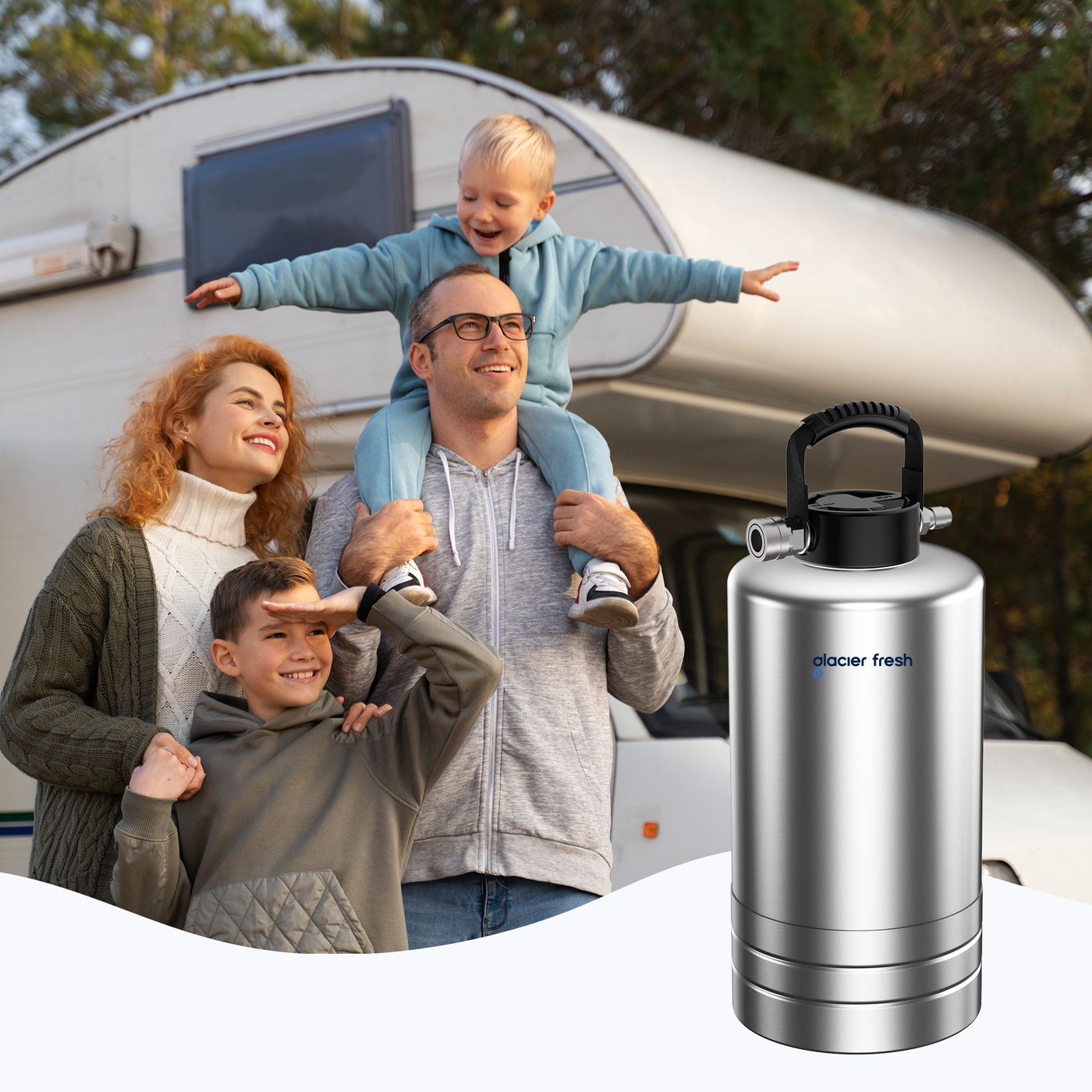 Der Wasserenthärter verfügt über einen robusten Edelstahltank und Schnellanschlüsse, wodurch das System langlebig und korrosionsbeständig ist und den Elementen und jeglicher Abnutzung während Ihrer Abenteuer standhält; es reduziert Kalzium, Magnesium, Eisen, Blei, Radium und andere Stoffe.