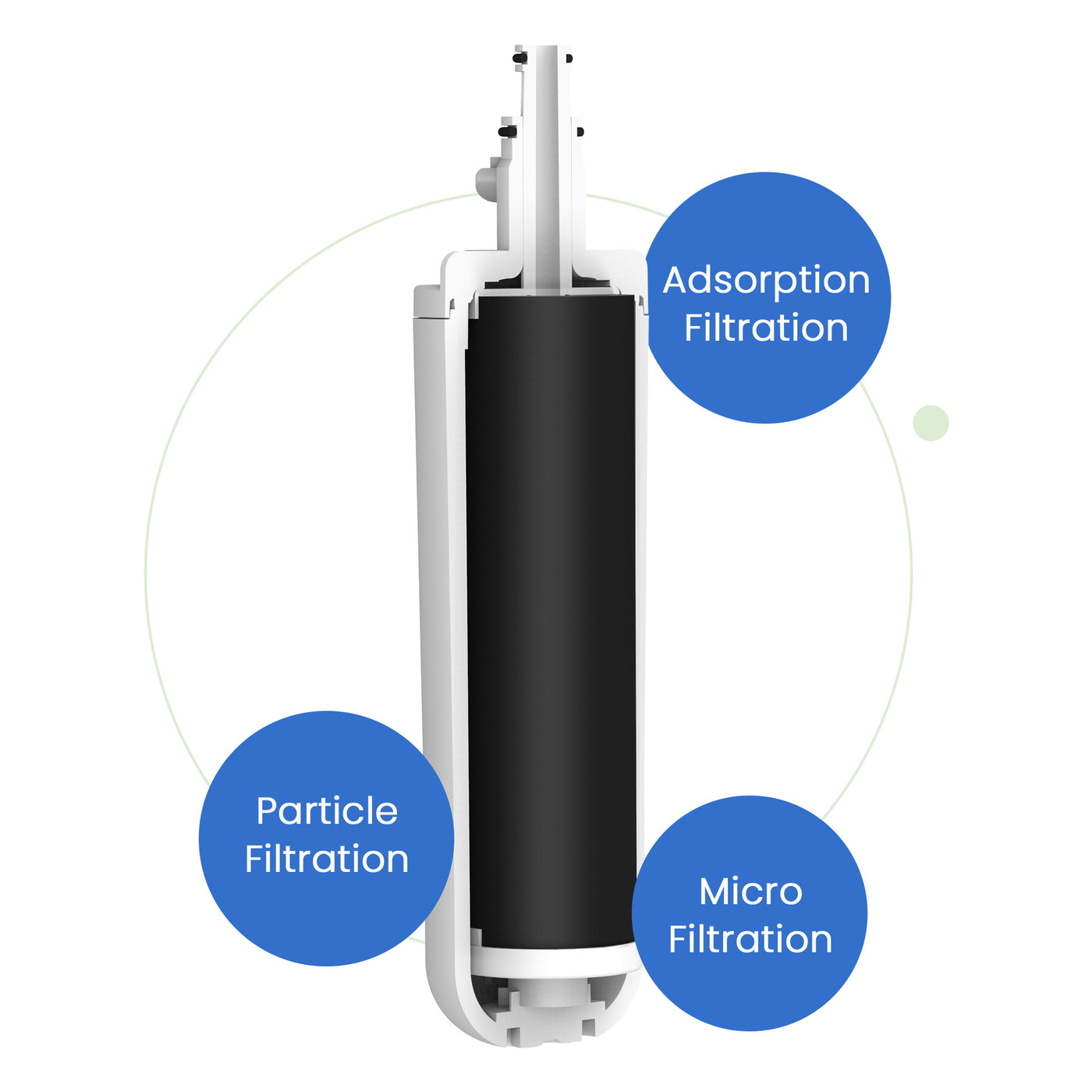 Es ist bleifrei und BPA-frei, kann 97,9 % Chlor entfernen und verbessert den Geruch und Geschmack des Wassers.