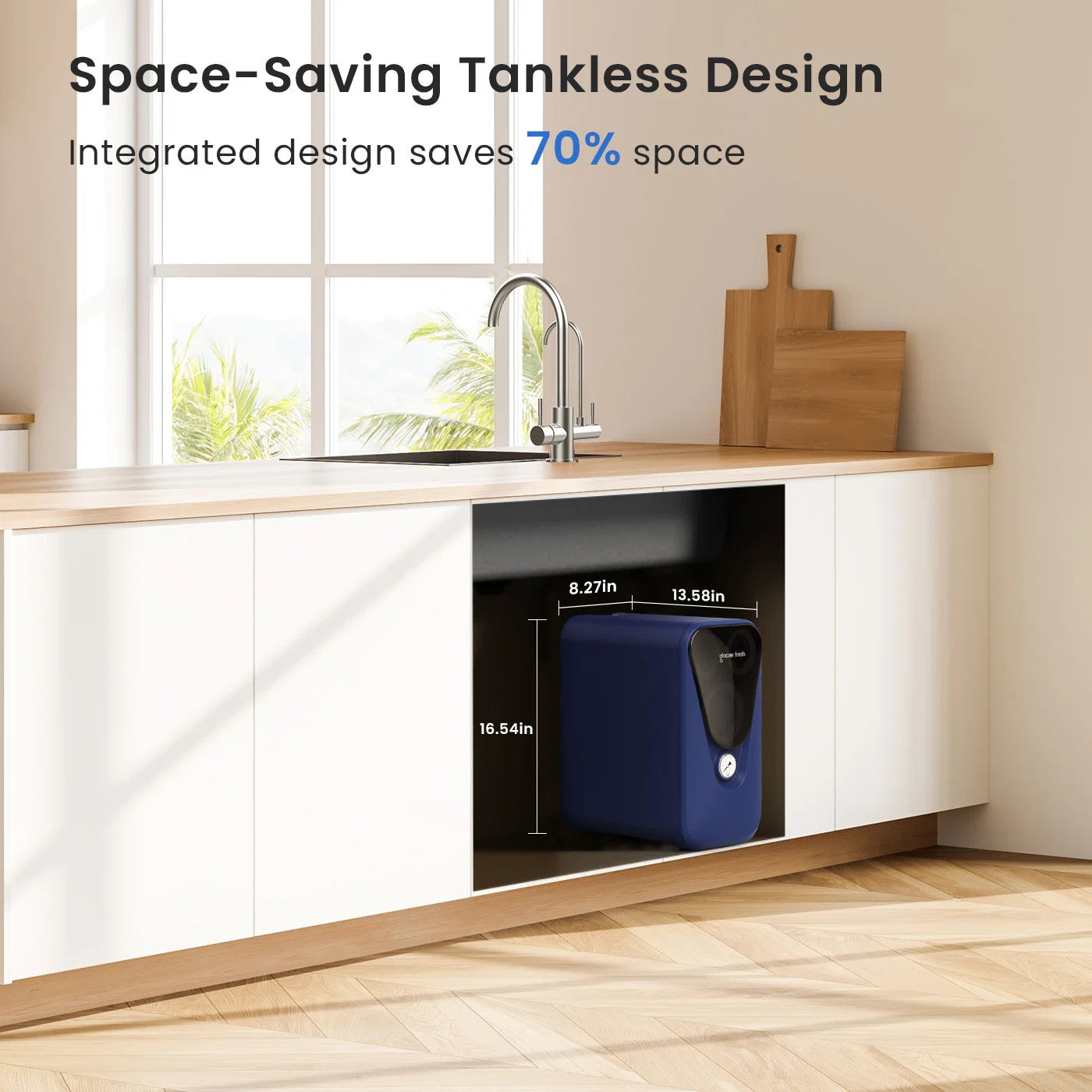 Das Glacierfresh U03 RO-System hat eine angemessene Größe (13,58 x 8,27 x 16,54 Zoll). spart viel Platz.