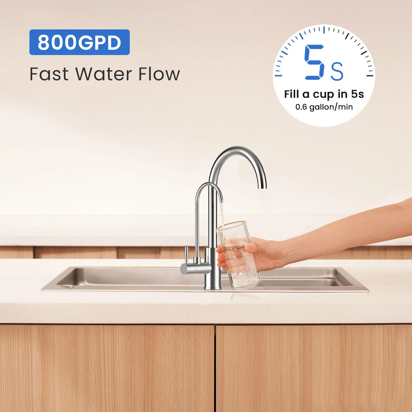 Das Untertisch-RO-System Glacierfresh/Osmax U03 ist umweltfreundlich und effizient. Sein Verhältnis von gereinigtem Wasser zu Abfluss von 3:1 gewährleistet eine effiziente Wassernutzung. Sie müssen keinen Strom anschließen und widerstehen so wirksam dem Risiko von Stromausfällen, Wasserlecks und Stromschlägen, während Sie gleichzeitig Ihre monatlichen Rechnungen sparen.