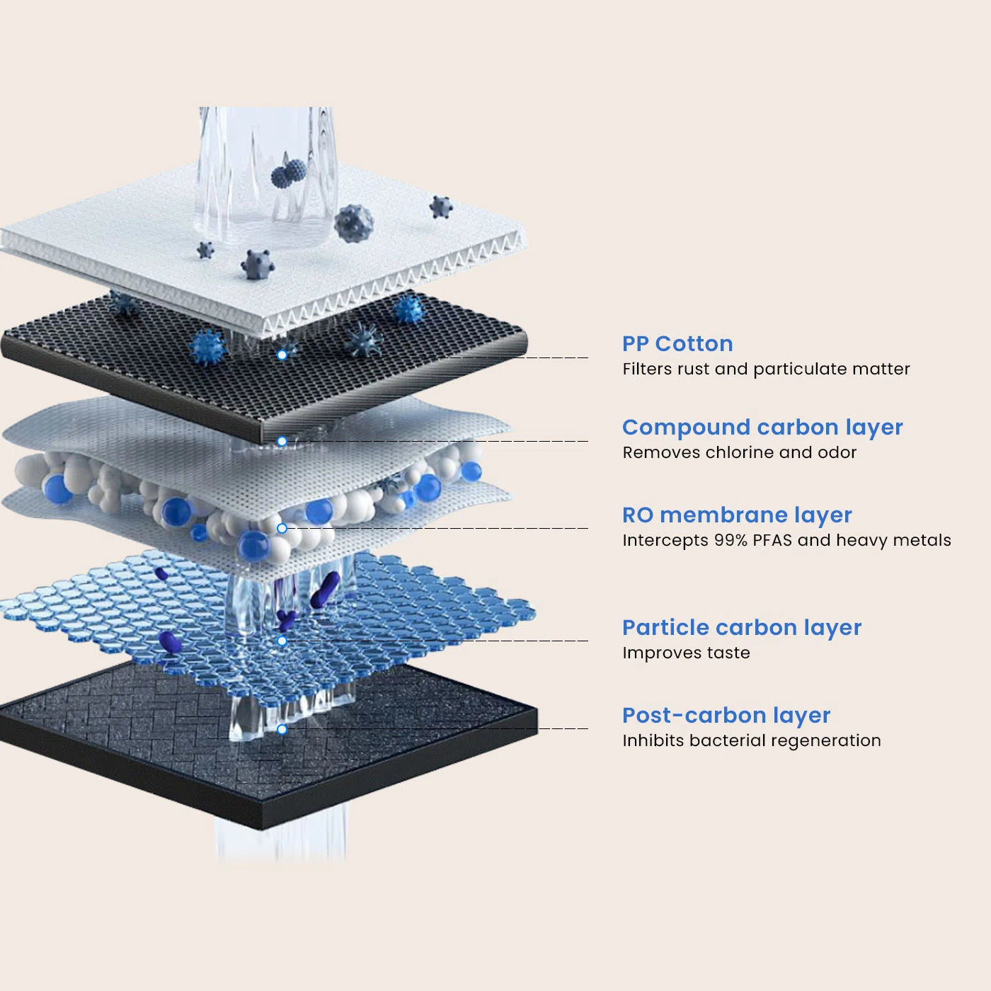 Die RO-Filtration sorgt dafür, dass Blei, Chlor, Fluorid und andere Verunreinigungen aus Ihrem Trinkwasser entfernt werden. Die Umkehrosmose-Wasserfiltration ist konkurrenzlos, wenn es darum geht, Verunreinigungen effizient und kostengünstig aus dem Wasser zu entfernen.