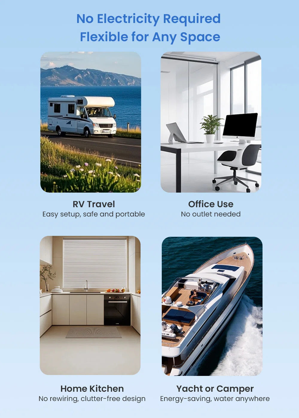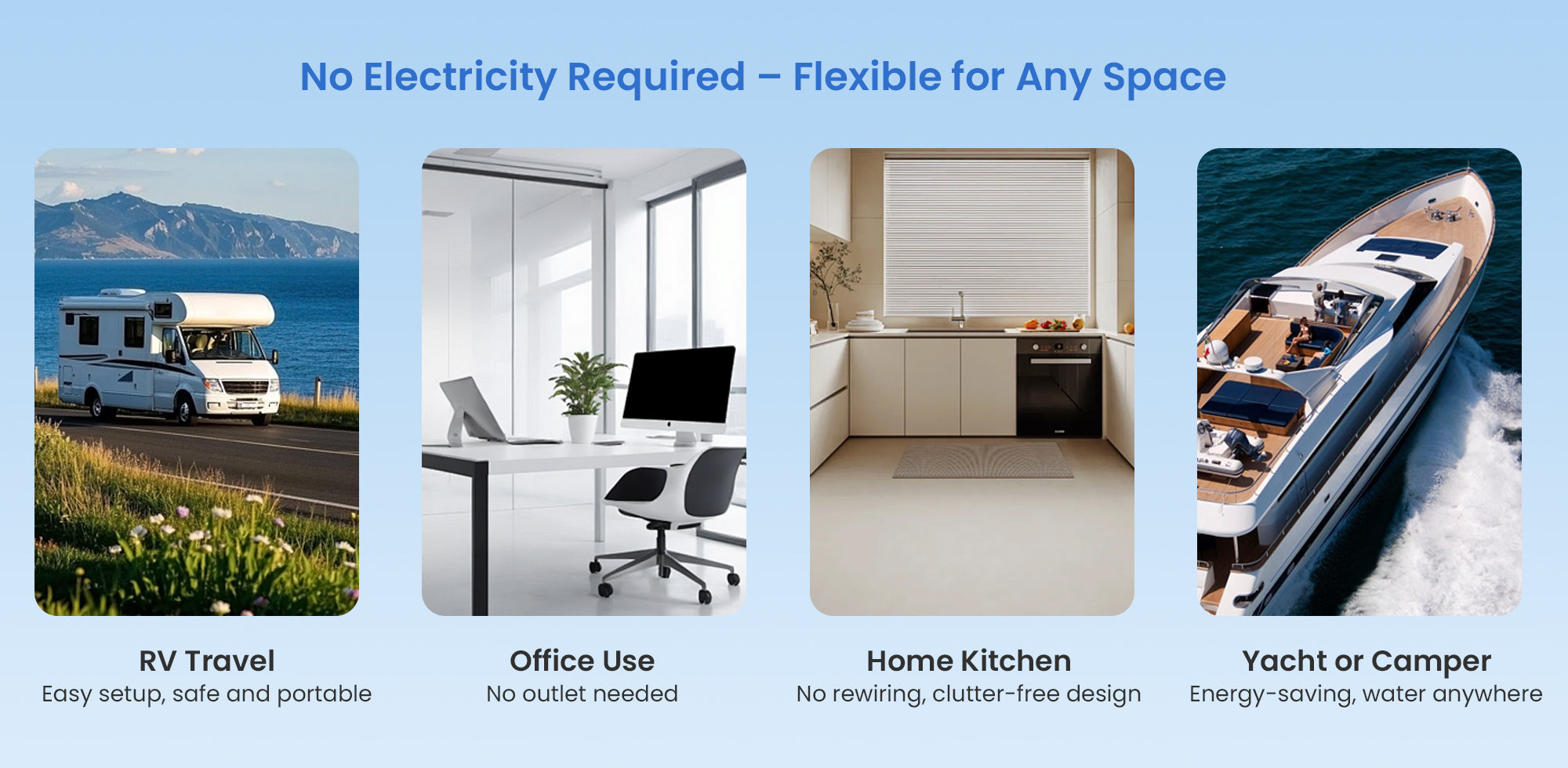 Das Umkehrosmosesystem GlacierFresh U03/OSMAX funktioniert ohne Strom und ist daher energieeffizienter. Sie müssen sich keine Sorgen über einen Mangel an reinem Wasser aufgrund eines Stromausfalls machen. Es hilft Ihnen, den Wasserbedarf in Umgebungen mit Stromausfall problemlos zu decken.