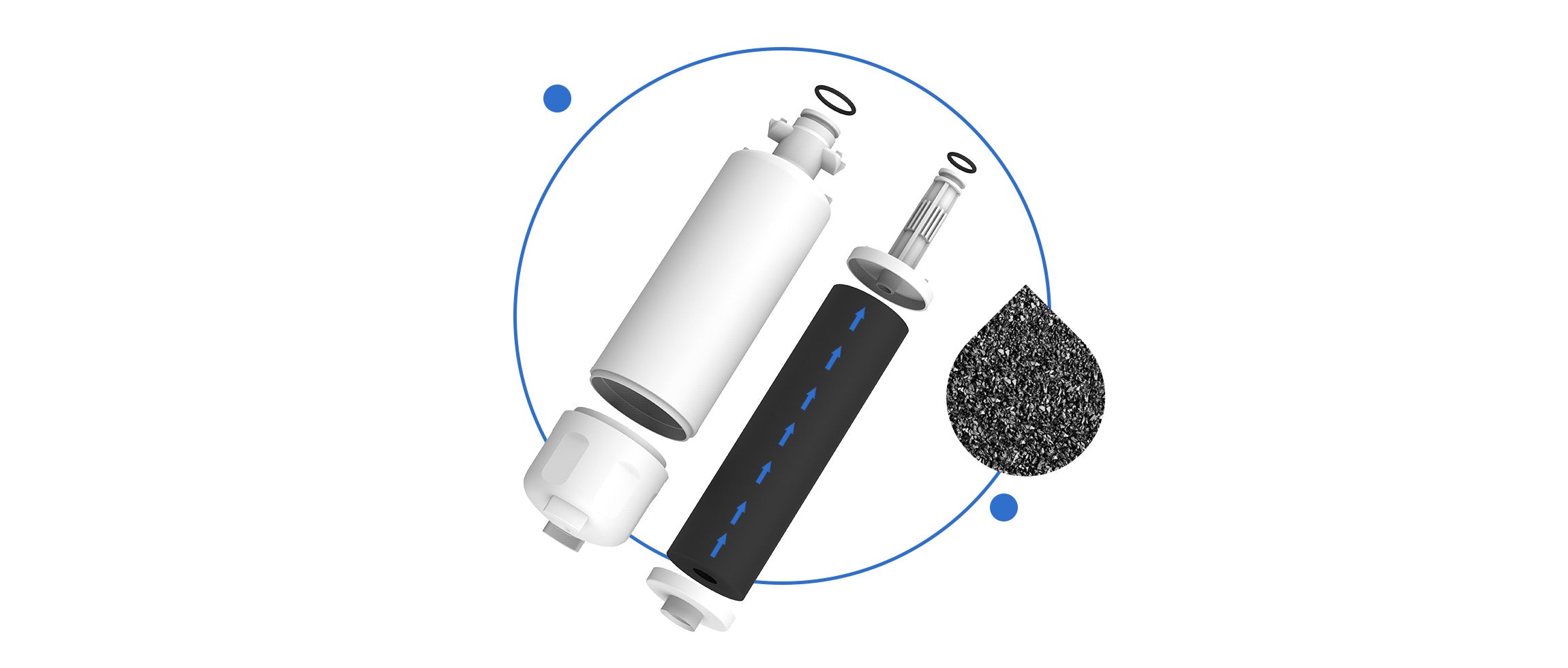 Aktivkohle aus Kokosnussschalen bietet eine sehr hohe Dichte mit einer Porengröße von 0,5 µm und ermöglicht so die beste Filterung von Verunreinigungen.