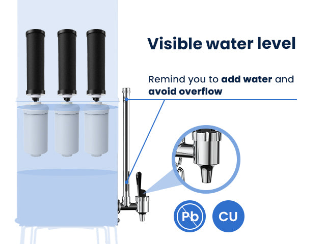 our gravity water filter faucet is made of 304 stainless steel, ensuring durability and no leakage, no rust.