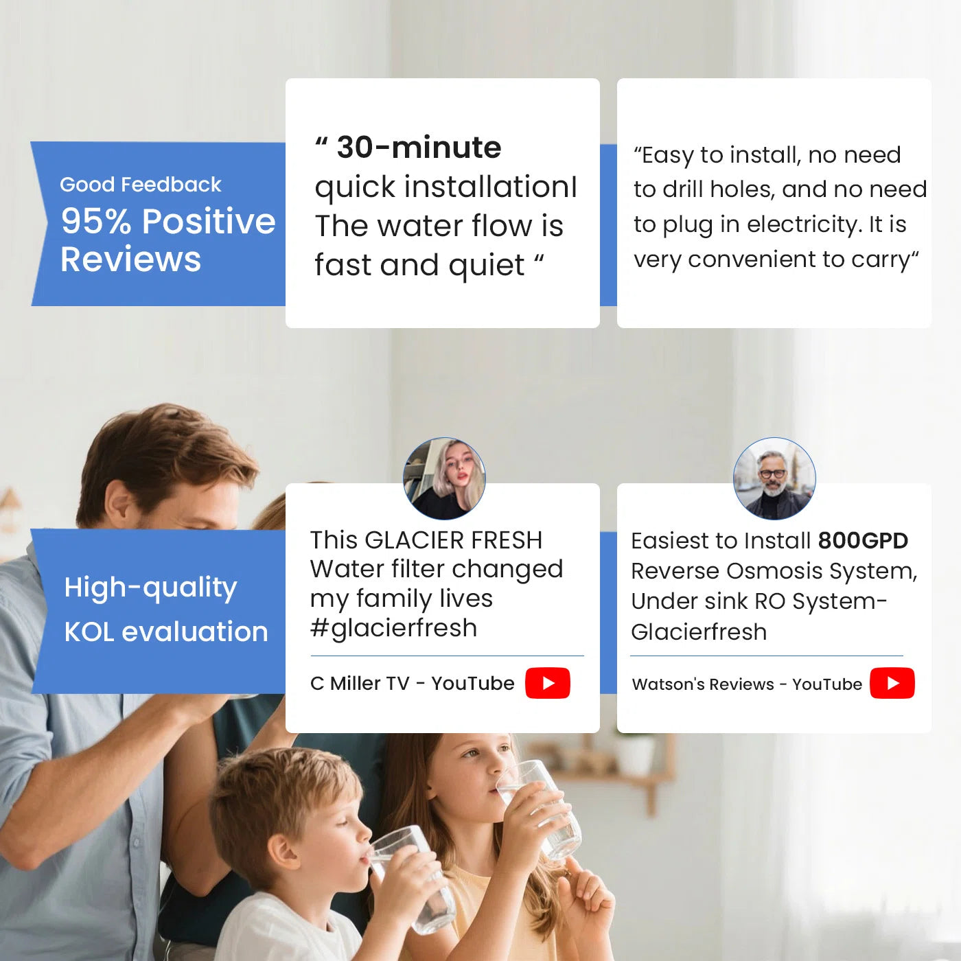 After evaluation by 100 real users and 100 Youtube and Tiktok KOLs, more than 95% of users were able to complete the installation and put it into use within 30 minutes. We have reason to convince customers that the simplest reverse osmosis system installation is not just a slogan, practice is the truth.