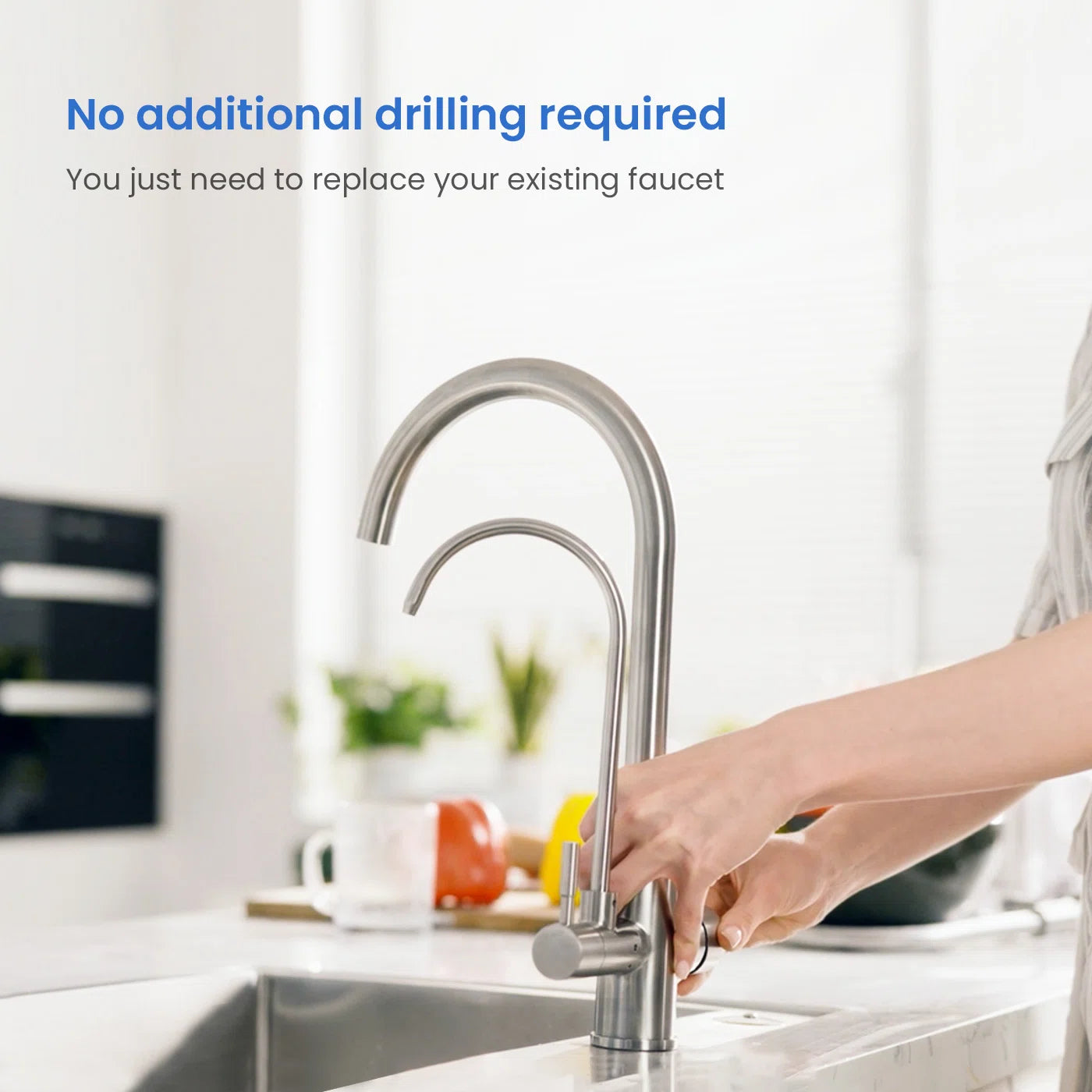 Glacierfresh U03 provides a drilling-free solution for faucets that can be successfully installed in just 5 steps to avoid damaging your countertop or sink.