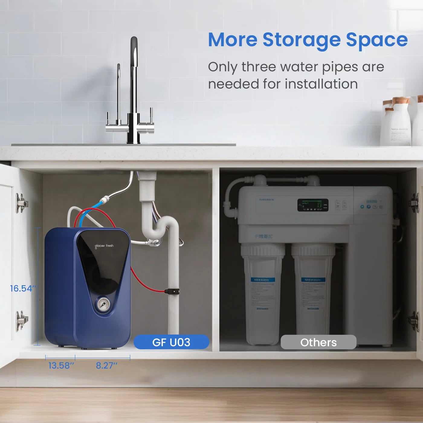 Glacierfresh-u03 undersink RO system is environmentally friendly and efficient, Its 3:1 purified water to drain ratio ensures efficient water usage.