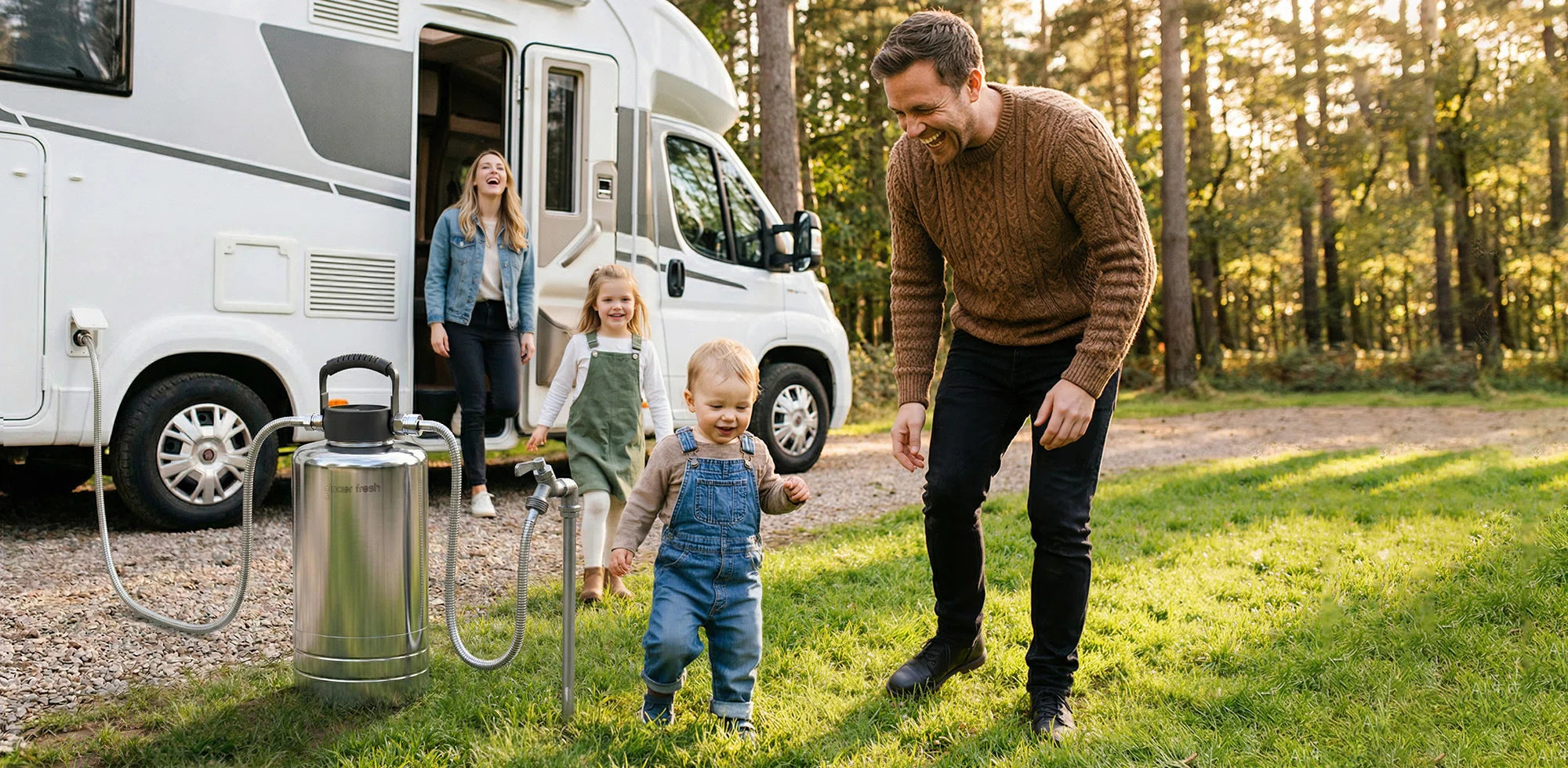 The water softener features a rugged stainless steel tank and quick connects, making the system both durable and corrosion resistant, allowing it to withstand the elements and any wear and tear during your adventures; it reduces Calcium, Magnesium, Iron, Lead, Radium, and others.