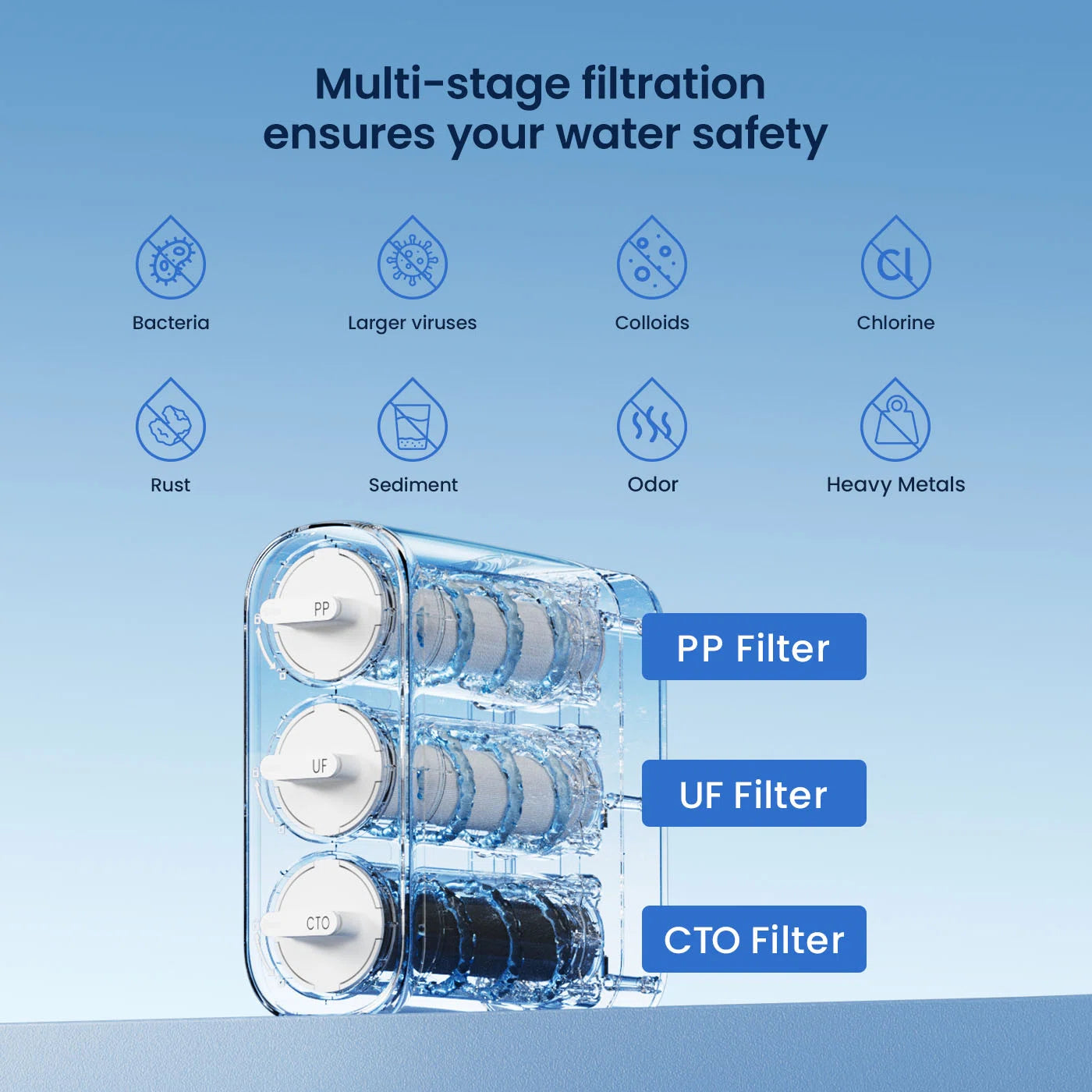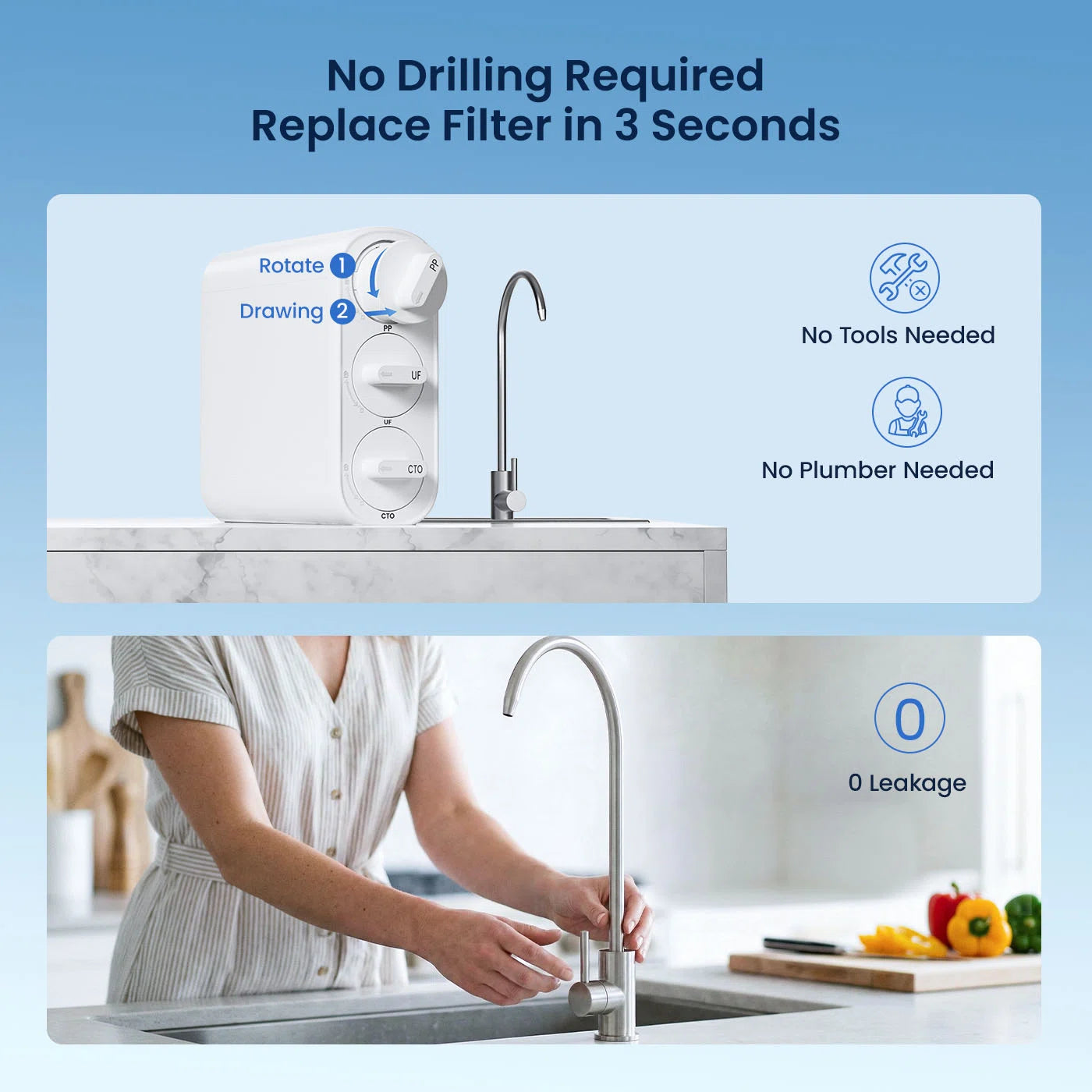 Zero Water Waste: Eco-friendly ultrafiltration design produces no wastewater, unlike traditional reverse osmosis systems