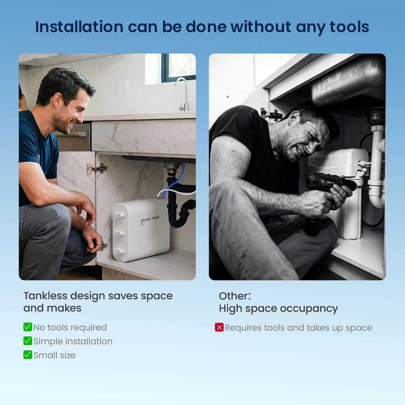 No tools are required! The GLACIER FRESH U06 uses a hand-tighten connection system. Simply connect the tubing, install the faucet, and you're ready to enjoy filtered water.