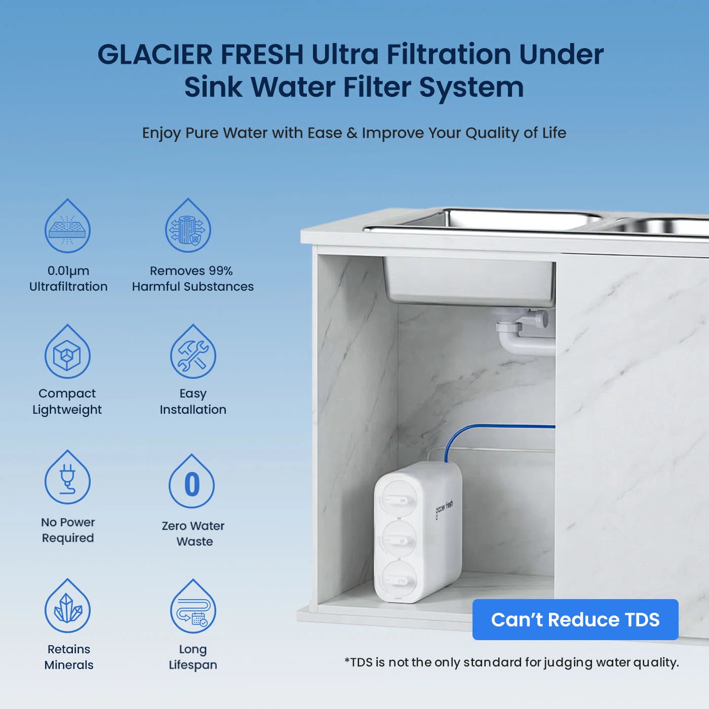 Forget the frustration of complicated installations. The GLACIER FRESH ultra filtration system is designed for real people, not just plumbers.