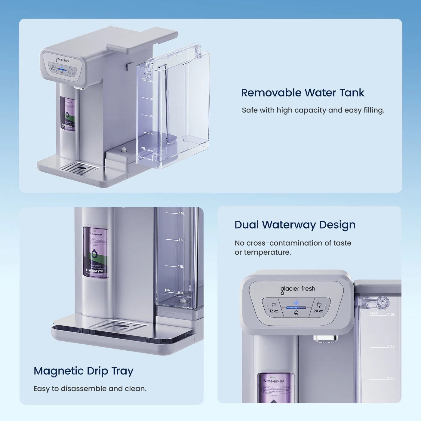 - Dual waterways ensure pure taste with no cross-contamination.